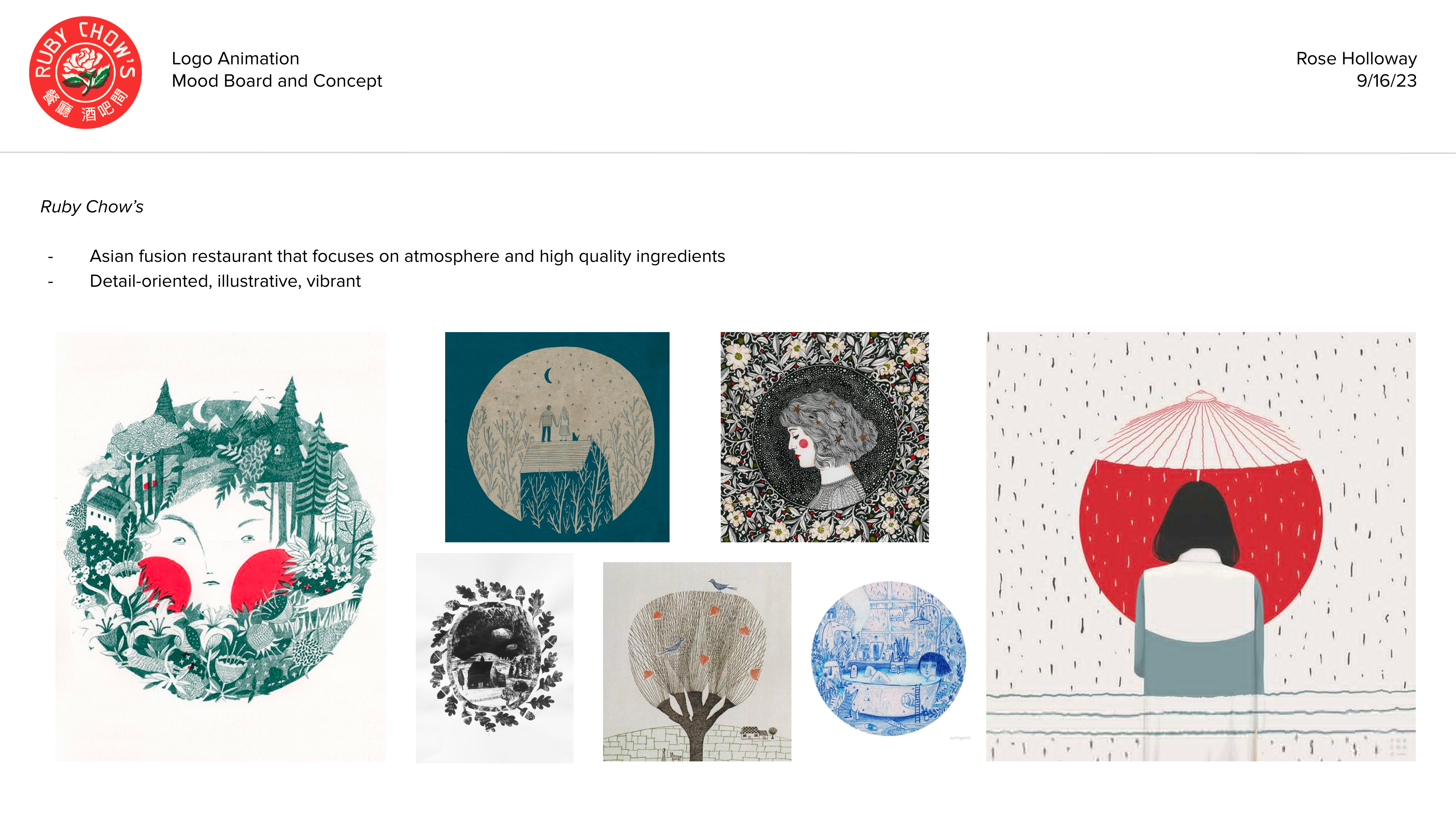 Ruby Chow’s is my favorite Asian-fusion restaurant in Atlanta. In this 5 second logo animation, each new illustration serves as a representation for a different culture they represent.